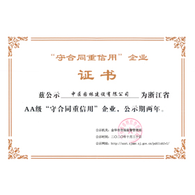 浙江省AA級“守合同重信用”企業
